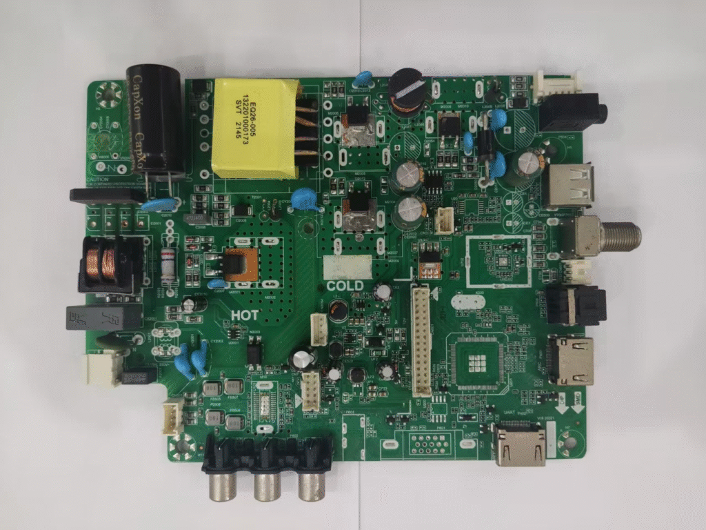 Amid the growing trends of smart and compact home appliances, the integration level and reliability of LCD TV mainboards have become pivotal to overall system performance. This analysis examines a typical All-in-One LCD TV Mainboard—integrating driver, power supply, and signal processing functions—to dissect its technical features and manufacturing processes, while showcasing LTPCBA’s expertise in home appliance electronics manufacturing.